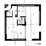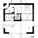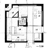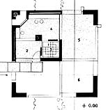Het interieur is sober: wit geschilderde wanden van betonsteen, terracotta vloer, zwarte stalen kozijnen. Tekeningen uit: "Mario Botta - Architetture e progetti negli anni '70" Emilio Battisti, Kenneth Frampton, onder redactie van Italo Rota uitgave: 1979, Gruppo Editoriale Electa, Milano. Foto's © ArchitectenWerk. We vonden op het net nog het door Botta ontworpen San Fransisco Museum of Modern Art (SFMOMA), een virtuele versie van een woonhuis in Pregassona, een via het net te bestellen CD-Rom met zijn werk en informatie over publicaties.