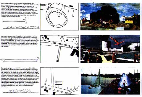 Motto: 'De Zaanlijn' Helene van Dooremoolen en Jacqueline Sikkink uit Eindhoven. Het plan bestaat uit het ontwerp van drie kunstmatige eilanden, bedoeld voor recreatie en aan te doen per watertaxi. De eilanden functioneren als picknick-plek (1), zwembad (2) en een vlot voor voortstellingen van toneel en muziek (3).