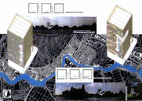 Motto: 'Drie paviljoens en een beeldentuin' Vincent Scholten uit Delft. De ontwerper maakte drie tentoonstellingspaviljoens, bestaande uit een stenen onderbouw met depotruimte en een houten bovenbouw van twee gestapelde expositieruimten. Ze zijn elk aangepast aan de verschillende locaties.