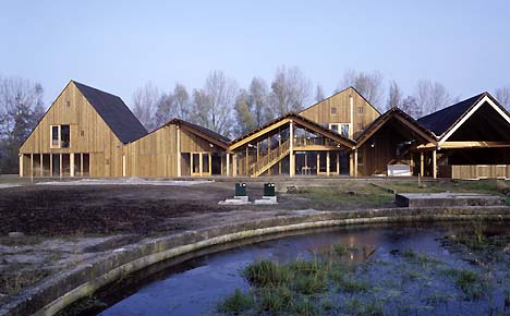 De Mikkelhorst, helemaal met naaldhout gemaakt met verschillende, nieuwe methodes van behandelen en conserveren, als een exposé van lokaal en duurzaam materiaalgebruik.