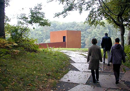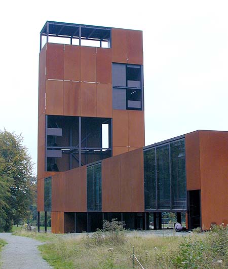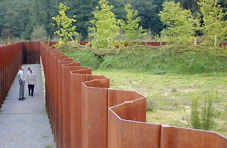 Tien kilometer ten noorden van Osnabruck (D) ligt aan de B218 het gehucht Kalkriese. Hier wordt door het Zwitserse architectenduo Annette Gigon en Mike Guyer een archeologisch museum met park gerealiseerd. Hoewel het museum pas eind april 2002 geopend wordt is het park nu al te bezichtigen. Van de weg af zijn de roestige (corten-) stalen paviljoens en het museum al zichtbaar. Bij de parkeerplaats start de tocht naar het museum, feitelijk een één verdieping hoge plaat, met daaraan gekoppeld een 40m hoge uitzichttoren. Bij het museum start de staalplaten weg, de zgn. 'Weg van de Romeinen'. Een pad dat evenwijdig slingert aan de aarden verdedingswal die bij de opgravingen is blootgelegd. Hoewel minder indrukwekkend dan bijvoorbeeld Hadrians wall in Engeland, wordt dit hier toch ook een WALL genoemd. Op de aarden heuvel waren palissaden aangebracht. Deze lijn wordt nu gemarkeerd door een golvende rij stalen buizen. De wal is gebouwd door de Teutonen op de grens van bos en open land. Het bos was hun terrein en wordt doorsneden door talloze kleine padjes - dit in contrast met de grote Romeinse weg in het open terrein. Dat tweeduizend jaar geleden 'intelligence' ook al belangrijk was, wordt gesymboliseerd door drie kleine paviljoens. Een voor het zien (met groothoekoog), een voor het (af)luisteren (met hoorn) en een voor contemplatie. In deze laatste worden actuele conflicten op beeldschermen getoond. De laatste grote ingreep is de reconstructiezone. Een gebied afgebakend door roestige damwanden waarbij je langzaam onder het maaiveld daalt en waar een stuk oorspronkelijk landschap en wal zijn gereconstrueerd.