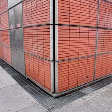 Ter afsluiting gingen we nog even langs bij een ander bouwwerk van Piano waar de restauratie ateliers en annexen van Pompidou gevestigd zijn. Hier de beroemde gevel met [om staven heen] gestapelde bakstenen. De in kaders opgenomen elementen geven het industriele gebouw toch een sterk en vriendelijk terra cotta karakter. Je kunt hier goed zien waar Rein Jansma en Moshe Zwarts de mosterd voor hun Bruggebouwen in Den Haag hebben gehaald.