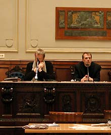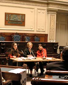 De 4 dagen van het debat waren zo opgebouwd dat er in de ochtendsessies inleidingen werden gehouden over de verschillende bestaande initiatieven om jonge architecten te ondersteunen - zoals op de foto linksonder een aantal Franse deelneemsters over het initiatief 'Albums des jeunes architectes' - in de middag werd in kleinere groepen gedebatteerd over de problemen die jonge architecten tegenkomen.