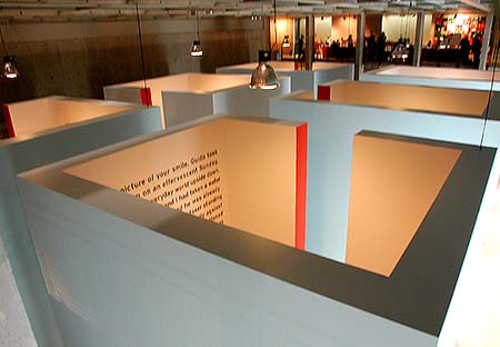 * UN Studio ontvouwt magere expositie in NAi De expositie bestaat uit negen vierkante ruimtes die ieder enig materiaal over een of meerdere projecten bevatten. Onderstaand een overzichtsfoto van de zes hoge ruimtes.