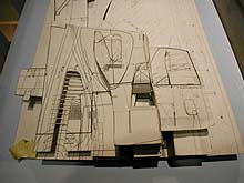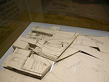 De informatie over het stationsgebied in Arnhem was nog het aardigst gepresenteerd. Hier een tweetal foto's van een geexposeerde werkmaquette waarin de ingewikkelde gevouwen vloerstructuur goed zichtbaar wordt.