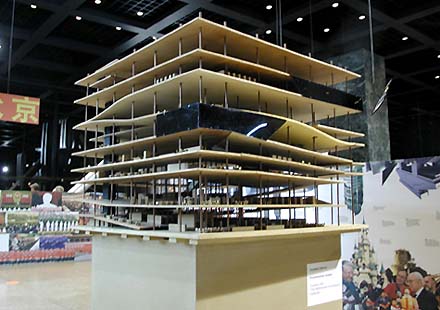 Een van de mooiste presentaties betreft de planontwikkeling voor de reeds afgeblazen, maar spectaculaire uitbreiding van het oorspronkelijk door Marcel Breuer gebouwde Whitney Museum of American Art in New York [zie foto onder].