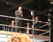 Rem hield tijdens de opening als laatste - na een toespraak van cultuurstaatssecretaris Medy van der Laan - een kort praatje in het Duits. Vooral met bewondering voor het werk van zijn 'gastheer' Mies van der Rohe. Hij besloot met: 'Bij OMA respecteren we Mies niet alleen, wij houden van hem!'