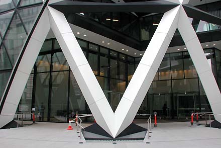 Onderstaand enkele beelden. Hier links met de totale hoogte van het gebouw, gesitueerd direct naast het minder bekende 'Holland House' van architect Berlage.