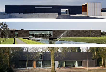 En dan drie zwarte 'lange jongens': van boven naar beneden de gemeentewerf in Loon op Zand van Lode Havermans, het verstilde Museum Belvedere in Oranjewoud van de hand van Eerde Schippers van Inbo en tenslotte geheel beneden het lange woonhuis in Steensel van Jacq. de Brouwer. Alle drie mooi gemaakt, maar zeker niet verrassend.