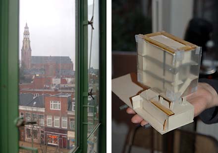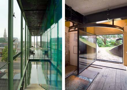 De eerder genoemde woning, een project dat ongeveer zes jaar geleden is gestart, bevindt zich op een kleine binnenstadkavel aan het Gedempte Zuiderdiep [zie foto boven]. In Groningen is het mogelijk om op diverse plaatsen in de historische kern tot vijf verdiepingen hoog te bouwen terwijl de gemiddelde hoogte nu drie etages is. Dit gebeurt ondermeer door het optoppen van bestaande panden. Voorbeelden hiervan zijn de veel gepubliceerde Lighthouses van DAAD maar ook Tony Fretton's huis voor de Blue Moon manifestatie. Het is mede mogelijk geworden omdat het stadsbestuur zich ten doel heeft gesteld om 10.000 [!] woningen binnen de bestaande voorraad te realiseren. Een fris geluid dat in het huidige, vooral conserverende klimaat in Nederland niet veel wordt gehoord.