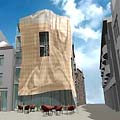 Het lijkt wel of al het architectuurnieuws in deze vakantietijd uit Den Haag komt... De Haagsche Courant maakt bekend dat wat De BOX reeds voorspelde nu ook is uitgekomen: Carel Weeber mag een toren ontwerpen van Richard Meier! Ze schijnen elkaar in New York te hebben ontmoet en Carel heeft ja gezegd onder 1 voorwaarde: dat zijn toren zwart mag worden..... en dat vond Richard wel goed, want ook in NY staan daar een paar hele mooie van. Een tweede interessant Haags bericht is de afwijzing van een ontwerp van Erik Vreedenburg van Archipel ontwerpers door de welstands commissie onder leiding van Hilde de Boer. Het gaat om een Gehry-achtige gevel - zie foto - die Archipel in de vorm van een metalen voile rond een hoek van hun nieuwbouwplan aan de Kettingstraat wil plaatsen. Het beschermde stadsgezicht ter plaatse laat volgens de commissie een dergelijke ingreep niet toe, ha, ha. De wethouder zal zich nu beraden en wellicht contrair beslissen; de ontwikkelaar heeft al gedreigd de locatie jarenlang onbebouwd te laten. Op de site van Archipel is het project ook nog voorzien van een aardig Quicktime filmpje.