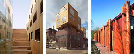 * 10 nominaties voor Houtprijs 2006 nu online Alle inzendingen en de door de jury bepaalde 10 nominaties voor de Hout architectuurprijs 2006 zijn nu op de website van het Centrum Hout te zien [zie ook onderstaande foto's]. Op 8 maart aanstaande tijdens de Houtdag in de Beurs van Berlage in Amsterdam zal de winnaar bekend worden gemaakt. Uit de 10 gekozen gebouwen kan tevens online worden gestemd voor de Publieksprijs. Foto linksboven: Atelierwoning in gastatelier, Vught - Kunst & architectuur producties Frank Havermans, foto rechtsboven: Gemeentehuis, Slochteren - zofa. Foto linksonder: De Commissaris, Venlo - KCAP architects & planners, foto middenonder: Lighthouses, Groningen - DAAD Architecten, foto rechtsonder: Vrijetijdscentrum Parkoers, Den Haag - Vera Yanovshtchinsky Architecten. Foto linksboven: Tweelinghuis, Houtigehage - Karelse Aptroot Architecten, foto middenboven: Medisch centrum voor huisartsen en apotheek, Almere - Bakers Architecten, foto rechtsboven: Leids Universitair Medisch Centrum , Leiden - Ontwerpgroep Trude Hooykaas. Foto linksonder: Wildobservatieplaats, Nationaal Park De Hoge Veluwe - Mario Maas en foto rechtsonder: Kinderdagverblijf De Kleine Kikker, Utrecht - Drost + Van Veen architecten.