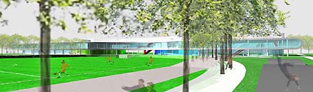* Peer Glandorff van FACT wint BNA-JA Prijsvraag Architect Peer Glandorff, een van de partners van FACT Architects uit Amsterdam heeft de eerste prijs gewonnen in de recente BNA Jonge Architectenprijsvraag. Zijn winnende ontwerp voor een Ronald McDonald sportcentrum voor gehandicapte jongeren [zie foto's] zal in de komende jaren worden uitgevoerd, net zoals het plan voor een kinderstad op het dak van het VU Ziekenhuis van Sponge Architects, de winnaars van de vorige editie van de prijsvraag. De volledige uitslag is te zien op de website www.jongearchitecten.nl. Peer Glandorff was reeds eerder succesvol in prijsvragenland. Hij won de tweede prijs in een internationale ziekenhuisprijsvraag en werd geselecteerd voor de ArchiPrix in 2005.