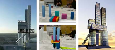 Architectuur.org meldde deze week als eerste de presentatie van het complex MuseumPlaza in Louisville Kentucky USA naar ontwerp van OMA/Rem Koolhaas/Joshua Ramus. Het door particuliere ontwikkelaars gefinancierde gebouw gaat onder meer hotelruimte, twee musea, woningen, kantoren, winkels, restaurants en parkeerruimte huisvesten. Op de foto's is het intrigerende arrangement van de verschillende gebouwdelen te zien. De kleine plaatjes zijn stills uit een quicktime video die op de website van het project is te bekijken. Kwamen bij de redactie van architectuur.org de beelden van het enorme Hyperbuilding project in Bangkok uit 1996 weer terug, wij moesten vooral denken aan Koolhaas' oude liefde voor de Russische constructivisten en dan met name Chernikov's gebundelde architectonische fantasie uit 1933.