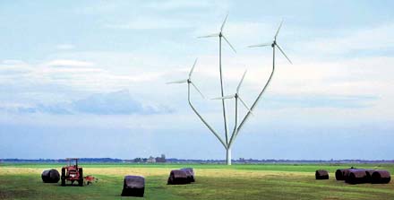 In opdracht van de Rijksbouwmeester zijn vijf vernieuwende ontwerpen voor windturbines gemaakt. Het betreft plannen van landschapsarchitect Paul van Beek, Pieter Bannenberg van NL Architects, Ton Matton van MattonOffice, kunstenaar Hans van Houwelingen en Winy Maas van MVRDV. Ze worden vanmiddag vanaf 14.00 uur gepresenteerd op een bescheiden symposium in Club 11, het restaurant van het tijdelijke Stedelijk Museum in het voormalige Stationspostgebouw van Amsterdam. Na de presentaties zal de discussie over de toekomst van windturbines in het Nederlandse landschap worden geleid door Dirk Sijmons, Rijksadviseur voor het Landschap.