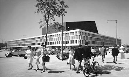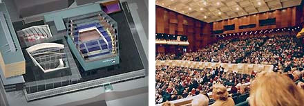 [De beelden laten het actuele Doelencomplex in Rotterdam zien: rechts op de overzichtsmaquette de oorspronkelijke grote zaal met links de extra zalen en het conservatorium die werden toegevoegd door Jan Hoogstad. Rechts het interieur van de grote zaal.] - 25 oktober 2006 - BOX 1.220