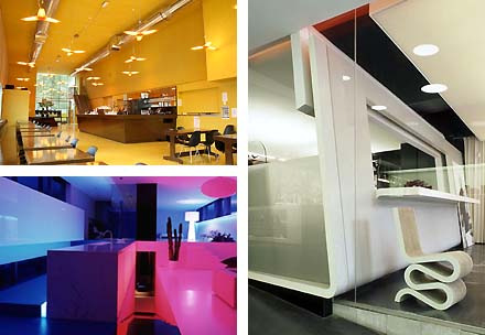 Kortgeleden ontvingen we het persbericht met de vijf genomineerden voor de Lensvelt de Architect Interieurprijs 2006. Omdat er geen beeldmateriaal bijgevoegd was, moesten we op het net zelf op zoek naar plaatjes bij de projecten en we vonden ze gelukkig alle vijf. Linksboven het interieur van de renovatie van het Brusselse Atomium door Conix Architecten en rechtsboven de Shoebaloo winkel in Rotterdam van Meyer en Van Schooten Architecten. Vervolgens linksonder het interieur van popcentrum de Effenaar van de hand van Bob Copray en Anthony Kleinepier, links geheel onder het loftinterieur van de woning in Humbeek naar ontwerp van Luc Binst en rechtsonder de lifestyleshop Klooster Donum van Ontwerpatelier Bert Gebruers-Peter Jannes.