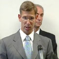 Het was een bijzondere ervaring om gisterenavond tijdens de NoVa uitzending over de afhandeling van de schade aan het Bos en Lommerproject een bekend gezicht te zien. De heer Paul Smeets [zie foto] leidt namelijk - namens de drie verantwoordelijke partijen Fortis Vastgoed, Hillen en Roosen en Multi Vastgoed - de onderhandelingen over het herstel met bewoners, winkeliers en de gemeente Amsterdam. En we kennen Smeets nog als directeur van Smeets Bouw uit Maastricht, het bedrijf dat verantwoordelijk was voor de bouw van Patio Sevilla waar op 23 april 2003 twee doden vielen door afbrekende balkons. Na de financiele afhandeling daar trad hij terug als leider van het familiebedrijf en werd mediator en crisismanager bij slepende bouwconflicten. Hij studeerde trouwens bouwrecht in Tilburg voordat hij actief werd in de bouw. Zijn rol bij Bos en Lommer is curieus omdat nu juist vandaag de eerste rechtszitting plaatsvindt over de schuldvraag van dat balkondrama: de betrokken bedrijven - waaronder Smeets Bouw - worden aangeklaagd wegens dood door schuld. Kennelijk is dat nu geen belemmering voor een vertrouwenwekkende afhandeling van de problemen bij het Bos en Lommerproject. Volgens de laatste berichten kunnen de bewoners daar voor de kerstdagen terug naar huis; de winkeliers een maand later. [De foto is een still uit een persconferentie van Smeets, een onderdeel van de toenmalige uitzending van NoVa tv op die noodlottige dag in april 2003; op de achtergrond burgemeester Leers van Maastricht.] - 03 oktober 2006 - BOX 1.213/CoBouw