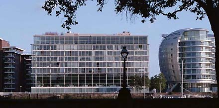 Het artikel besluit met een kort curriculum van Foster. Op zijn 16e ging hij van school af om bij de afdeling financien van de gemeente Manchester te gaan werken. Hij vervulde zijn dienstplicht bij de Royal Airforce en studeerde vervolgens architectuur in Manchester en aan de Yale School of Architecture. In 1967 richtte hij zijn eigen architectenbureau op. Hij werd in 1990 geridderd en voor het leven benoemd tot Lord in 1999. Foster was meermalen getrouwd en heeft een jong gezin samen met zijn derde vrouw, de Spaanse Elena Ochoa. Hij woont boven zijn kantoor aan de Thames in twee enorme penthouses [zie foto boven]. De andere foto toont het echtpaar, dat in mei van het vorig jaar door de Spaanse pers werd gespot tijdens een privebezoek aan Santiago de Compostela.