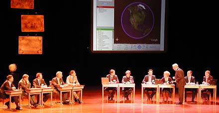 De BOX was gisteren aanwezig op de inmiddels traditionele nieuwjaars bijeenkomst van de Stichting Bouwresearch [SBR]. Met meer dan 400 andere gasten luisterden we naar een debat - over het verwerven en gebruiken van kennis - tussen oudere en jongere medewerkers van bedrijven in de bouwketen. Het vond plaats in het theater van Schiedam onder leiding van 'Klasgenoten' gastheer Koos Postema [zie foto boven]. Tevens werd een nieuwe website gepresenteerd. Op www.sbr-info.nl zijn alle publicaties die de SBR ooit heeft uitgebracht [en die voor deze tijd nog relevantie hebben] gedigitaliseerd opgenomen en thematisch ontsloten. De enorme kennisbank is nog tot maart aanstaande gratis toegankelijk. Daarna moet worden betaald per module.