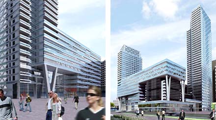 Het bekende Haagse winkel- en kantorencentrum Babylon, ooit ontworpen door architecten Lucas en Ellerman [nu ELV in Rijswijk], wordt in de komende jaren fors uitgebreid met een ring aan nieuwe kantoorbebouwing en met op twee van de vier hoeken gecombineerde woontorens van 100 en 140 meter hoogte. Het bestaande hotel wordt zelfs overbouwd met een aantal nieuwe verdiepingen. Het ontwerp van deze ingenieuze, maar enigszins traditioneel ogende nieuwbouw is van Meyer en Van Schooten architecten uit Amsterdam. Het is hun tweede grote project in Den Haag, na het enorme PPS project voor het bestaande gebouw van het ministerie van Financien.