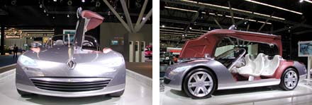 Na afloop van de bijeenkomst was er uiteraard nog gelegenheid om de auto-expositie uitgebreider te bekijken en we schoten vooral wat beelden van de gepresenteerde concept-cars. Zo zijn onderstaand de futuristische modellen van de Franse merken Citroen, Peugeot en Renault te zien. Ze lijken zo verschillend vanuit de eigen beeldtradities, maar blijken toch ook overeenkomsten te hebben; ze zijn bijvoorbeeld alle drie enorm van maat.