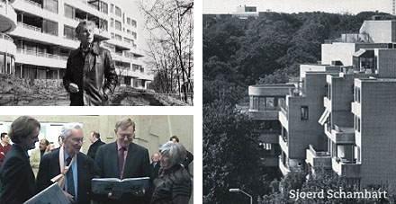 Op dinsdag 07 augustus is de bekende Haagse architect Sjoerd Schamhart op 88-jarige leeftijd overleden. Hij was onder meer een van de oprichters van Atelier PRO. Schamhart heeft gedurende een halve eeuw een omvangrijk oeuvre opgebouwd van woningen, kantoren, scholen, bedrijfsgebouwen, culturele instellingen en ateliers. Met name in de regio Den Haag speelde Schamhart een belangrijke rol. Bekende ontwerpen van zijn hand zijn de uitbreiding van het Haags Gemeentemuseum, het woongebouw Couperusduin [zie foto boven] en het Algemeen Rijksarchief. Naast zijn architectuur ontwikkelde Schamhart een aantal initiatieven en activiteiten binnen het Haagse culturele circuit voor o.a. HOT, de Appel, het Filmhuis, Diligentia en Pulchri. Respect voor de gebruiker en voor bestaande stedelijke structuren is een belangrijk kenmerk van Schamharts architectuur. Als 'betrokken burger' leverde hij dikwijls alternatieve ontwerpen en commentaar op plannen van de gemeentelijke beleidsmakers.
