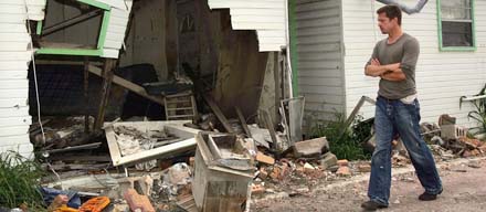 Onder de titel 'Make it Right' [MIR] is acteur Brad Pitt - zie foto boven - vorig jaar een project gestart om de slachtoffers van hurricane Katrina in New Orleans te helpen. Samen met een team onder leiding van architect William McDonough probeert hij geld bijeen te krijgen voor de bouw van 150 goedkope vrijstaande huizen in Lower Ninth Ward, een van de zwaarst getroffen wijken. Hij vroeg 13 nationale [zoals Morphosis, zie foto geheel onder] en internationale architectenbureaus [zoals Adjaye Associates, Pugh and Scarpa Architecture en Shigeru Ban Architects] mee te denken over de ontwerpen. Ze dienden heldere en eenvoudige plannen in die op poten staan of kunnen drijven bij wateroverlast. Gisteren werden de ontwerpen in New Orleans gepresenteerd en inmiddels zijn er genoeg donaties binnen om al zeven van de 150 woningen te kunnen realiseren.