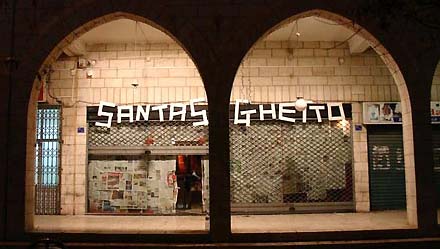 Net als vorig jaar in een kraakpand in hartje Londen, heeft de Britse grafitti-artiest Banksy ook nu weer een Santa's Ghetto georganiseerd. Dit keer in het hart van Bethlehem zelf - de plaats waar Christus zou zijn geboren - gelegen op de bezette Westoever in Palestina. Samen met een aantal bevriende Europese en Palestijnse kunstenaars worden kunstwerken aan de man gebracht waarvan de opbrengst geheel naar het goede doel gaat, in dit geval het welzijn van de kinderen van de Westoever.
