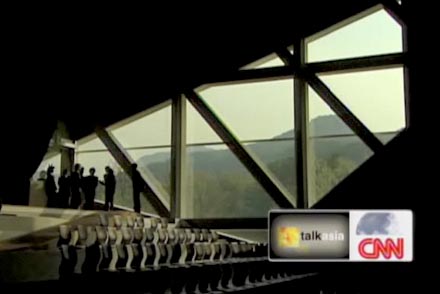 We werden attent gemaakt op een recent interview met Rem Koolhaas in 'Talk Asia' een wekelijks televisieprogramma van CNN. Het gesprek is opgeknipt in drie delen van elk ongeveer 8 minuten. Het eerste deel met op de achtergrond het zojuist opgeleverde Prada Transformer paviljoen als inleiding en onder meer over zijn samenwerking met Muccia Prada [zie screenshot boven]. Het tweede gedeelte over zijn visie op de stad, met onder andere een korte rondrit door Seoul, de hoofdstad van Zuid Korea.