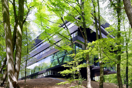 De presentatie beperkt zich nu nog tot de vermelding van zijn naw-gegevens plus een fotografisch overzicht van zijn recent opgeleverde en prijswinnende meesterwerk in Arnhem. [Op de foto - fotograaf wordt op de website nog niet vermeld - het revalidatiecentrum Groot Klimmendaal in Arnhem.] - 09 november 2010 - BOX 1.533