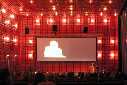 Natuurlijk had Aaron wel zijn best gedaan op zijn lofprijzing en je kon aan zijn Nederlands trouwens horen datie al weer even weg is uit ons land. Met gebruikmaking van vele beeldende slierten trachtte hij ons in taal duidelijk te maken wat de betekenis van het Neutelings Riedijk-oeuvre is of zou kunnen zijn: 'pakkend maar toch ongrijpbaar', 'meesterlijk, maar niet direct duidelijk', 'iets terugbrengen dat weg was', 'barokke burgerlijkheid' of 'gladheid met terugwerkende kracht'... en ook hij sprak net als Van Warmerdam en passant nog zijn afschuw uit over de komende bezuinigingen op cultuur: 'Als Wilders hier de baas wordt - net als denkelijk straks Sarah Palin in de USA - kom ik hier nooit meer terug!'. Echter, het dankwoord van de architecten zelf - ditmaal door het 'trekken van het kortste strootje' uitgesproken door Michiel Riedijk - maakte toch de meeste indruk. Hij bedankte allereerst een ieder die had bijgedragen aan het gerealiseerde werk - ruim 160 projecten waarvan zo'n 35 gebouwd - en deed dat in naar buiten uitwaaierende concentrische cirkels, naar analogie met het wereldbeeld van de oude Griek Ptolomeus. Naast de directe medewerkers bedankte hij de aannemers voor de bouw, de houtvesters, de steenhouwers en de fabrieksarbeiders voor de bouwmaterialen, de vrachtwagenchauffeurs en de schippers voor het vervoer, tot en met de postbodes zonder wie de opdrachtbrieven niet zouden zijn aangekomen...