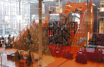 * Nationale en lokale opening architectuurjaar 2011 De nieuwjaarsrecepties zijn weer in volle gang... Hare Majesteit ontving haar gasten al in het Paleis op de Dam en ook in architectenland zijn de ontvangsten en jaaropeningen aanstaande. Zo zullen alle organisaties op het gebied van de architectuur voor de tweede keer [zie onderstaande foto uit 2010] bij elkaar zijn. Vanwege de actuele verbouwing van het NAi-gebouw ditmaal in het Groothandelsgebouw bij het Centraal Station in Rotterdam. Ontvangst op vrijdag 21 januari tussen 17.00 en 20.00 uur op de 8e etage.