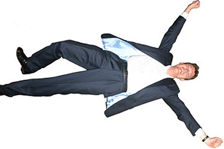 Halbe Zijlstra krijgt de steun van de Tweede Kamer voor zijn rigoureuze bezuinigingplannen op cultuur. Het debat van gisteren was voor wat betreft de inbreng van de regeringspartijen VVD en CDA [evenals de wat recalcitrante PVV-er Bosma; de man pleitte hartstochtelijk voor meer nederlandstalige muziek, haha] bijna tenenkrommend van kwaliteit. Deed de oppositie tenminste nog een poging tot inhoudelijke duiding van het belang van cultuur voor onze samenleving, de coalitie schoof slechts hier en daar nog met een miljoentje meer of minder in deze of gene richting. Geen enkele wezenlijke wijziging dus. Ramsey Nasr zei het nog het mooist aan het slot van de demonstratie op het Malieveld: 'Dit kabinet haalt de mens uit ons weg'... We kunnen het culturele slagveld pas in de loop van het aankomende jaar in zijn geheel overzien, maar we denken dat de klappen - net als door de economische crisis in onze eigen architectenbranche - hard aan zullen komen. En dat allemaal door die wat wereldvreemde Zijlstra, als de ware aars van onze actuele beschaving. [Op de foto: staatssecretaris Halbe Zijlstra probeert met zijn eigen lichaam wanhopig het kruislogo van de Mars van de Beschaving na te bootsen.] - 28 juni 2011 - BOX 1.569