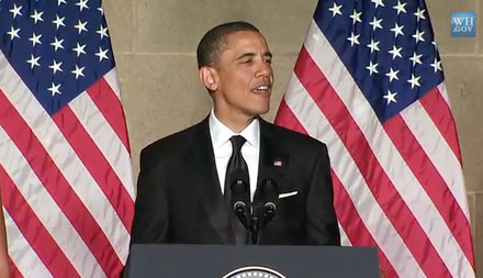 Afgelopen vrijdag werd in Washington de uitreiking van de Pritzker Prize aan Eduardo Souto de Moura opgeluisterd met de aanwezigheid van president Barack Obama en zijn echtgenote Michelle. Een waarlijk unieke gebeurtenis dat 's werelds belangrijkste politicus op deze wijze aandacht geeft aan de architectuur. Obama bekende in zijn korte speech - ook te zien via Youtube - zelfs dat hij eigenlijk architect had willen worden, maar door gebrek aan talent in de politiek terechtkwam.