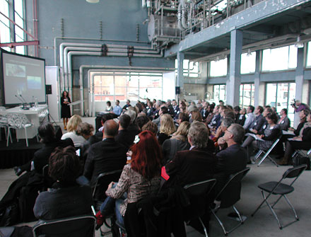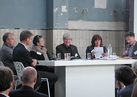 Afgelopen donderdagmiddag verzamelde vooral overheids-, beleids- en gesubsidieerd architectonisch Nederland zich in het ketelhuis van de Voorburgse Caballerofabriek voor de startbijeenkomst ter voorbereiding van een nieuwe Architectuurnota. De bijeenkomst zou de aanwezigen gelegenheid bieden om mede betrokken te zijn en punten aan te dragen die in die nota aan de orde zouden moeten komen. De middag was georganiseerd door de ministeries van I&M en OCW [het ministerie van BZK was niet zichtbaar aanwezig, hoewel daar de Rijksgebouwendienst en het complete woonbeleid onder ressorteren] en was helaas volledig dichtgetimmerd met inleidende lezingen, twee columns en drie thematische debatten. Die waren op zichzelf niet onaardig, maar zo werd het publiek kennelijk vooral een passieve rol toebedeeld. We noteerden toch een paar opmerkelijke uitspraken. De mooiste zinsnede kwam trouwens uit de inleiding van Rijksadviseur Landschap Yttje Feddes: 'We hebben architecten gekoppeld aan varkenshouders', maar ook uit de gescripte toneelstukjes aan de drie debattafels [Opdrachtgevers, Onderwijs en Ontwerpers] kwam nog wel wat aardigs. Zo stelde Rudy Stroink dat hij wel een opdrachtgeversopleiding in Delft wilde opzetten met vier hoogleraren rond de thema's Visie, Plek, Kapitaal en Organisatie [hij zou het zelf goed doen in het eerste thema denken wij...]. En in de ontwerperstafel schaamde good-old Jan Brouwer zich voor de leegstand van zijn drie kantoorgebouwen langs het spoor: "Ik doe mijn ogen altijd dicht als ik er nu langsrijd..." [je zou bijna zeggen dat de ogen gesloten kunnen blijven, ook als ze vol zijn]. En Fred Schoorl van de BNA stelde nog een interessante vraag: "Hoe zou Architectuurbeleid er uitzien zonder het Rijk?", inderdaad een optie die langzaam naderbij komt, nu de budgetten en subsidies worden gedecimeerd. Opvallend was tenslotte de gesproken column van Wouter van Stiphout, die met name de architecten opriep om meer engagement en verantwoordelijkheid te tonen in hun werk aan de inrichting van de samenleving. De trekker van het beleid - Henk Ovink - sloot de middag af met de voorzichtige conclusie dat hij 'de aanscherping van het beleid minder zal richten op ontwerpers maar vooral op opdrachtgevers en onderwijs' en dat hij de nota in april 2012 klaar wil hebben. Aan zijn drive was af te lezen dat we het vooral van hem moeten hebben... Met nostalgische gedachten aan de invloedrijke eerste A-nota van Hedy d'Ancona en Hans Alders en de constructieve voorlopers daarvan - denk aan Tjeerd Dijkstra - verlieten we de verzamelde beleidsmakers. [Foto boven toont het ketelhuis tijdens de inleidingen, foto beneden laat de debattafel 'opdrachtgevers' zien, met geheel links ontwikkelaar Rudy Stroink. Er komen nog twee van dit soort bijeenkomsten, de eerstvolgende op 10 november handelt waarschijnlijk over scholenbouw.] - 24 oktober 2011 - BOX 1.584