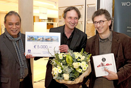 * Prijsuitreiking Architect van het Jaar 2011/2 Gelukkig hebben we de foto's nog... want het was een ontspannen en goed bezochte middag afgelopen zaterdag in het Materia Inspiration Centre op IJburg. Onderstaand enkele beelden van het korte debat met oud-juryleden, dat voorafging aan de prijsuitreiking en vanzelfsprekend van de winnaars Andre Kempe en Oliver Thill.