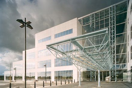 Leden van het voormalige redactieteam van het tv-programma De Keuringsdienst van Waarde starten vanavond - 20.20 uur Nederland 2 - met het nieuwe programma De slag om Nederland. Roland Duong, Teun van der Keuken en Andrea van Pol gaan op zoek naar de stille krachten achter de vaderlandse ruimtelijke ordening. De eerste aflevering handelt over de nieuwbouw [en de nu lege oudbouw] van adviesbureau KPMG, beide in Amstelveen. We zijn benieuwd naar het echte verhaal achter deze soap, want in dit specifieke geval hebben we ook nog eens te maken met twee van de lelijkste gebouwen van Nederland... De nieuwe suikertaart [zie foto boven] naar ontwerp van architect Marcel van der Schalk - die overigens tekende voor twee of drie kantoren van KPMG - en de ooit door Alberts en van Huut ontworpen en door Klunder uitgewerkte oudbouw [zie foto onder].