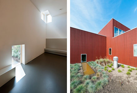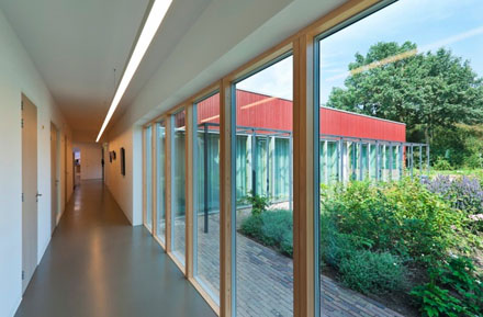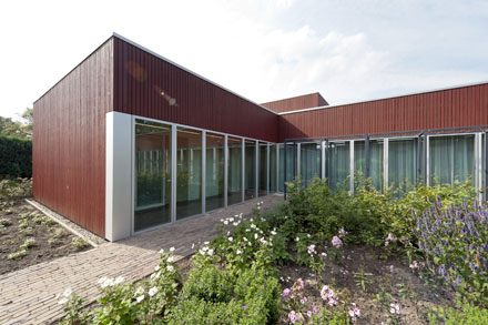 Om het voor deze locatie forse programma te kunnen inpassen heeft DLVZ/ twee tuinen (patio's) geintroduceerd. Zelf spreekt de architect over een kruisvormig gebouw met vier tuinen maar dat lijkt vooral een mentale constructie. Het kruis is namelijk zodanig bewerkt dat je ook over een kern met drie vleugels van verschillende hoogte zou kunnen spreken. De houten gevels doen denken aan traditionele Zweedse schuren.