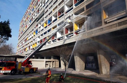 Afgelopen vrijdag het bericht dat tien woningen in de Unité d'Habitation naar ontwerp van Le Corbusier in Marseille in vlammen zijn opgegaan [zie foto's hieronder]. Het wereldberoemde gebouw was zojuist gerestaureerd met het oog op de 60-e verjaardag in oktober aanstaande.