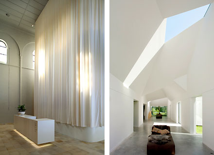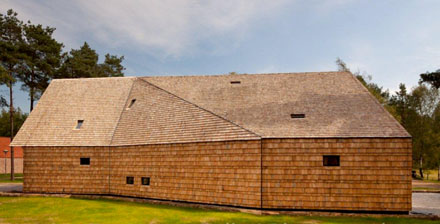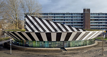 Ja mensen, aanstaande woensdag wordt in het Eye Filmmuseum bekendgemaakt wie de BNA Gebouw van het Jaar Prijs krijgt uit handen van BNA-voorzitter Willem Hein Schenk... We denken even mee met de jury: wordt het een mooi kantoorgebouw, zoals Europol [beeld hierboven] van Quist Wintermans of de Kromhoutkazerne van Meyer en Van Schooten [zie hieronder]? We denken het niet, hoewel de keuzes van de jury bij de regionale winnaars tot nu een zekere modernistische voorkeur lieten zien... Of wordt het een mooi laboratorium [boven] zoals van de ZwarteHond in Groningen of een mooi doosvormig bedrijfsgebouw [beneden links], zoals van cepezed? We denken het niet... de Groningse gevelopbouw hebben we ook in Nederland al in andere vormen voorbij zien komen en de mooie dozen van cepezed kennen we ook al wel; geen schokkend nieuws dus. En ook het sympathieke wooncomplex [rechtsboven] in Amsterdam van Geurst en Schulze dichten we geen grote kansen toe. Tja, dan die nieuwe school hieronder van Grosfeld Van der Velde waarvan de houten doos op betonnen letters staat? Waar zagen we dat reeds eerder? Of dan die andere school van Marlies Rohmer? Met mooie - in elkaar geschoven -cirkelvormige plattegronden [beeld onder] en dat aardige gevouwen gevelpaneeltje? Of dat tweede! project van Rohmer, die gymnastiekzaal die ook nog energieneutraal is en dazzlepainted? We denken het niet... Of dat aardige houten doopsgezinde kerkje van Faro in Elspeet? Waren alle actuele kerken maar zo [milieu]vriendelijk vormgegeven, maar wat voegt het gebouw werkelijk toe aan onze vaderlandse architectuur? Nee, wij denken dat het een van de herbestemmingsprojecten gaat worden; en welke daarvan is dan de beste, de meest unieke, degene die - of in beeld, of in opzet, of in aanpak - iets toevoegt aan dat wat wat we al kennen, die een draai geeft aan ons denken, of die uitblinkt in werkelijke schoonheid? Is dat het kantoor van IMD in die Rotterdamse loods, naar ontwerp van Ector Hoogstad [onder links]? Of het hergebruik van een gevangenis volgens het plan van Engelman [onder rechts]? Of het magistrale stedelijk blok in Leeuwarden waarin het Friese provinciehuis werd uitgebreid door Sjoerd Soeters? Wat ons betreft mag hij dit jaar de prijs wel winnen. Zelden zagen we een mooier plan waarin bestaande en nieuwe bebouwing in het hartje van de stad zo vakkundig en verstandig werden samengebracht! En ook dat interieur van de bestaande St. Josephkapel door BO2 architecten [hieronder links] straalt een vakmanschap en vernieuwende eenvoud uit welke een prijs waard zou zijn... Maar u begrijpt het al waarde lezers, er is maar een project dat de architectonische tand des tijds werkelijk gebruikt en kan doorstaan, de Villa 4.0! Oorspronkelijk ontwerp van de inmiddels reeds lang gepensioneerde architect Gé van der Pol, en nu voor de vierde keer verbouwd en uitgebreid door Dick van Gameren [hierboven rechts de hal van de villa]. Vreemde, nieuwe dakvormen, prachtig bovenlicht in bijna alle ruimten en een hoogwaardige detaillering die zijn weerga niet kent! Er rust maar één klein smetje op het proces: Van der Pol vertelt het haast onbewogen, maar snijdend: 'Mijn medelid van BNA en AetA vond het niet nodig om met mij contact op te nemen over zijn plan...' De BNA gedragsregels spreken voor zich; Van Gameren had het beter kunnen en moeten doen, maar dat kan natuurlijk nog steeds. Als hij overmorgen zijn terechte prijs krijgt, kan hij Van der Pol alsnog in de feestelijkheden betrekken; want zonder de structuralistische basis van dat zeshoekenplan was dit verrassende resultaat er immers niet geweest...