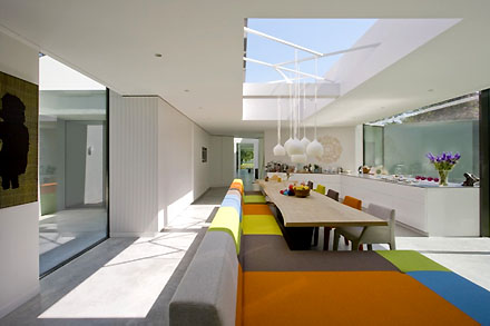 De relatief jonge opdrachtgever van het winnende Gebouw van het Jaar project - voornaam Boris - verkocht zijn bedrijf en plande aansluitend met echtgenote en twee kinderen een wereldreis per zeilboot. Na krap een jaar onderweg besloten ze niet verder te reizen, en in het Gooi te gaan wonen. Boris vloog alleen terug naar Nederland en kocht al binnen een paar dagen - mede met behulp van Google Earth - een bestaande jaren '60 villa op een prachtig bosrijk perceel in Naarden [oorspronkelijk ontwerp van architect Gé van der Pol]. Omdat hij eerder naar grote tevredenheid op de kop van Borneo Sporenburg woonde in een project van Mastenbroek en Van Gameren was de keuze voor de architect van de verbouwing, c.q. uitbreiding snel gemaakt. De rest is inmiddels geschiedenis; vanuit de uiterst persoonlijke visie van de opdrachtgever onstond een uniek ensemble van woon- werk- en slaapruimtes, dat via een landschapsplan van Michael van Gessel magnifiek werd ingebed in de prachtige omgeving. Tot slot een klein stukje uit een Engelse tekst van architect Van Gameren over die opdracht: "When the client set off with his family on a round-the-world sailing trip in 2007, he had no idea that this would lead him to the villa in which he lives today. Daily life on board ship was quite different from that on land: you had to generate your own electricity, make potable water with a watermaker, separate waste products down to the smallest scale and of course exploit the wind for travel purposes. All at once, things he and his family had scarcely considered on land became crucial matters. Back in the Netherlands, this fact of automatically considering aspects of sustainability became the springboard for their new house: Villa 4.0."