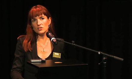 Of is haar habitat als onderzoeker in de column-vorm onderweg om te solliciteren naar het curatorschap van de volgende Biennale? Wij weten het niet... want ze schrijft haar tekst als ogenschijnlijk onafhankelijk kijkende buitenstaander. Ze pakt de directeuren, maar ze zou natuurlijk ook de beslissers in de besturen van de drie genoemde en onafhankelijke stichtingen kunnen aanspreken... Haar eigen INTI-bestuur bijvoorbeeld is nu in handen van de sociaal-democratie via voorzitter Felix Rottenberg [en in het dagelijkse werk natuurlijk - ook financieel - gesteund door een PvdA-gedeputeerde en een PvdA-wethouder]. Bij het NAi is de sociaal-democratische [tevens VARA-]voorzitter Hans Andersson na jaren NAi-bestuur kortgeleden afgetreden vanwege de fusie. En bij de IABR is VVD-er Nijpels nu voorzitter [en interessant detail: ook de heer Ton Meijer zit in datzelfde bestuur; was hij niet ook voorzitter van het Berlage instituutsbestuur?]. Is dat wellicht een teken van de tijd? Want kwamen niet alle recente bezuinigingen op cultuur juist tot stand door toedoen van de VVD, die nu nog grootste partij in de Tweede Kamer? Mijn afsluitende stelling is daarom: Probeer niet onderhuids de genoemde directeuren te 'pakken' voor de teloorgang van het architectuurbeldeid, maar spreek de beslissende bestuurders of de verantwoordelijke politici aan. En meldt vervolgens in commentaren op die betreffende situaties in ieder geval je eigen belang daarbij. Want nu lijkt de aanval op Brugmans objectief te zijn, terwijl die, als gelieerd deelnemer aan dat IABR-programma, in werkelijkheid in een kennelijk meer persoonlijk daglicht staat. Ik neem mijn petje graag af voor mensen met de kwaliteiten van Michelle Provoost, maar zie wel graag welke pet zij zelf opzet als ze publiceert. [De onderste foto laat Provoost zien tijdens de opening van een INTI-congres. Naschrift: Twitter bleek voor een dergelijk debat niet het juiste medium te zijn en in een enkele tweet van mijn hand maakte ik fouten. Zo suggereerde ik dat het belang van Provoost mede lag in een financiele bijdrage van de IABR aan haar expositie in Almere. Dat weet ik echter niet zeker en dat neem ik dus terug. Met een excuus, ook aan Vanstiphout. Naschrift 2: Enkele uren na plaatsing ontving ik een tweet van Vanstiphout waarin hij bovenstaande tekst afdeed als 'paranoïde geraaskal'. Waarvan akte. Aansluitend 'blockte' hij voor mij zijn Twitteraccount. Naschrift 3: Interessant om te zien dat een (inter)nationaal gewaardeerd hoogleraar zo reageert - zonder enig argument, maar als knikkerkind. - Oeps, weer een fout van mijzelve. Als ik het opzoek kent Van Dale (uitgave 2005) het woord 'knikkerkind' niet; maar wel het woord 'knikkerjongen': "Jongen die (nog) met knikkers speelt." - Wederom excuus. ] - 15/17 augustus 2012 - BOX 1.622