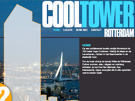 * Nu al 3e architect betrokken bij Rotterdamse toren Op 07 januari jongstleden verscheen een uitgebreid artikel in het Financiele Dagblad over de perikelen rond de zogenaamde Cooltower, een gedachte woontoren van 100 meter hoogte die moet verrijzen in het Baankwartier in het centrum van Rotterdam.