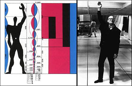 Nog in de vorige eeuw heeft architect Le Corbusier de gulden snede toegepast in het door hem ontwikkelde maatsysteem De Modulor. Gebaseerd op de toen gangbare lengte van de man [1,75 m] en na een suggestie van een vriend - 'de held in detectiveromans is immers altijd 6 feet tall...' - via 6 keer de voetmaat van 30,5 cm aangepast naar 1,83 meter. En dan vervolgens via de gulden snede onderverdeeld in 1,13 en 0,70 meter; vervolgens door naar 0,43 m, 0,27 m, 0,16 m en tenslotte 11 cm, tevens de koppenmaat van een baksteen. Verdubbeling van die 1,13 maakt de maat van 2,26 m die te zien is aan de hoogte van het plafond dat de man rechts met zijn omhoog gestoken arm dan net kan aanraken - zie beeld hieronder. Corbu werkte dan ook lange tijd in een kamertje van 2,26 m kubiek, achterin zijn kantoorverdieping in Parijs...