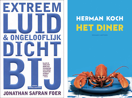 En dat échte kwaliteit zichzelf niet verloochent, laat het overige portfolio van Roald Triebels glashelder zien. Hieronder links zijn gelauwerde boekontwerp met een eveneens sterk typografisch beeld - mooiste NL boekomslag 2005 - voor de beroemde roman van Jonathan Safran Foer en rechts het inmiddels over de gehele wereld verspreide blauwe-bord-met-rode-kreeft-omslag van 'Het Diner', de bestseller van auteur Herman Koch.
