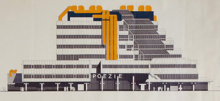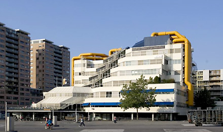 Ze vormen zo een ruimtelijke structuur die doet denken aan een driedimensionaal opgeblazen schilderij van Piet Mondriaan. Maar ook - en mede vanwege de voortdurende experimenteerdrift in materiaal en techniek van de architect - kwamen de beelden van Constant's New Babylon weer bovendrijven.