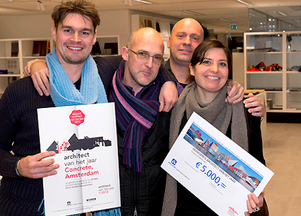 Zie ook de > pdf met geschreven toelichtingen bij de ingediende nominaties. [Op de foto de winnaars van de #AvhJ Prijs 2012, Concrete Amsterdam. Zie voor alle verdere info ook de eigen website van de #AvhJ-Prijs.] - 20 november/05 december 2013 - BOX 1.655