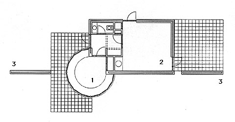- de ontspanningsruimte (2), waar het personeel tijdens rustperioden verblijft. Het derde element is: