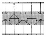 Aan de gevelzijde van de kantoorstroken zijn steeds de kantoorkamers gesitueerd; aan de ene kant kamers van 4,50 m diep en aan de andere zijde met een diepte van 5,40 m. Tussen de laatsgenoemde kamers en de gangzone is een serie inpandige ruimten gemaakt, die voor diverse functies wordt gebruikt. het merendeel van deze ruimten kan geheel of gedeeltelijk bij de aanliggende kantoorkamer getrokken worden, zodat naast de potentiele wandposities per 1,80 m een meer optimale indeling voor de te huisvesten organisaties wordt gerealiseerd.